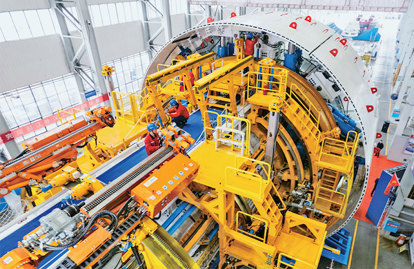 2024年11月22日,由鐵建重工、水電六局聯(lián)合打造的“江漢新石器號”隧道掘進機在長沙下線,這是迄今中國最大直徑敞開式巖石隧道掘進機。圖為當日,在鐵建重工長沙第一產業(yè)園,工人在調試“江漢新石器號”隧道掘進機。 新華社記者 陳思汗/攝?