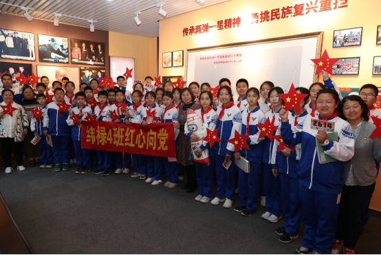 2023年中國航天日到來之際,來自北京市育英小學航天校區(qū)“緯祿4班”的40余名師生懷著無比敬仰的心情走進黃緯祿精神講堂,帶著對未來的無限憧憬,在黃緯祿院士雕像前共同唱響歌曲《紅星閃閃》。