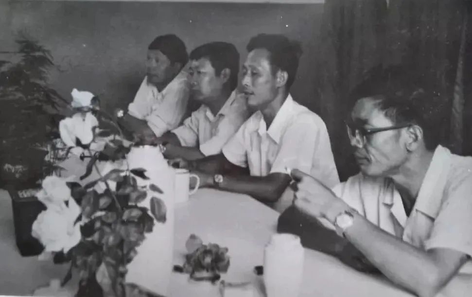 李勝佑(右二)在〇六一基地表彰大會上發言