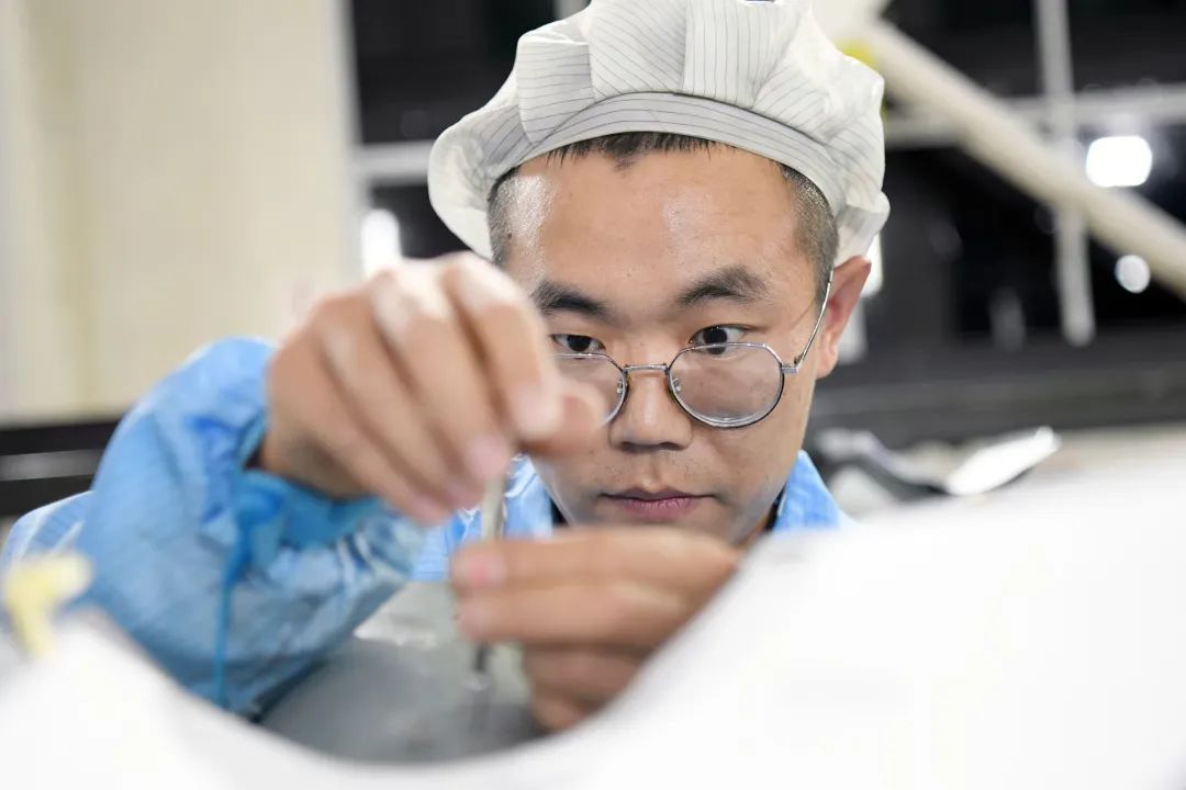 “我們兩個繼續組裝,你對裝好的再檢測一遍后提交檢驗。”“晚走一點,把材料烘好,明天白班直接上手干。”他們邊吃邊討論著工作安排?!案桑 逼渲幸幻a人員喊了一聲,休息加上用餐時間不到15分鐘的他們,一起起身朝工位走去。