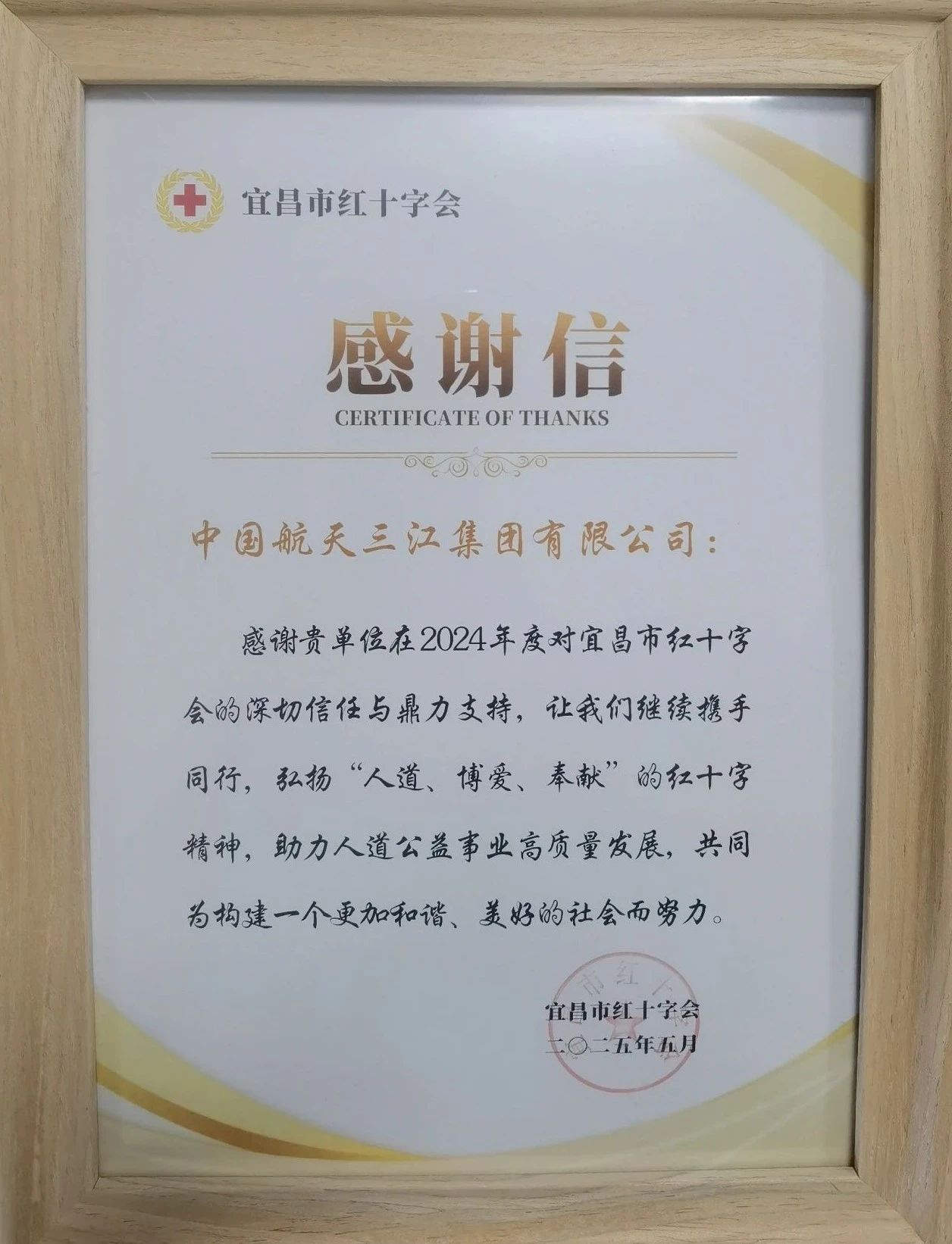 航天三江再獲中國紅十字總會表彰